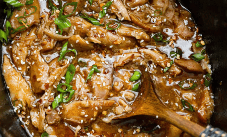 - Shred the Chicken: Use two forks to shred the chicken in the slow cooker. Whisk together cornstarch and water in a small bowl, then add to the slow cooker and stir to incorporate. Cover and cook for 20-30 minutes, until the sauce thickens. Serve your crockpot Korean BBQ chicken over warm rice, and garnish with green onions and sesame seeds.