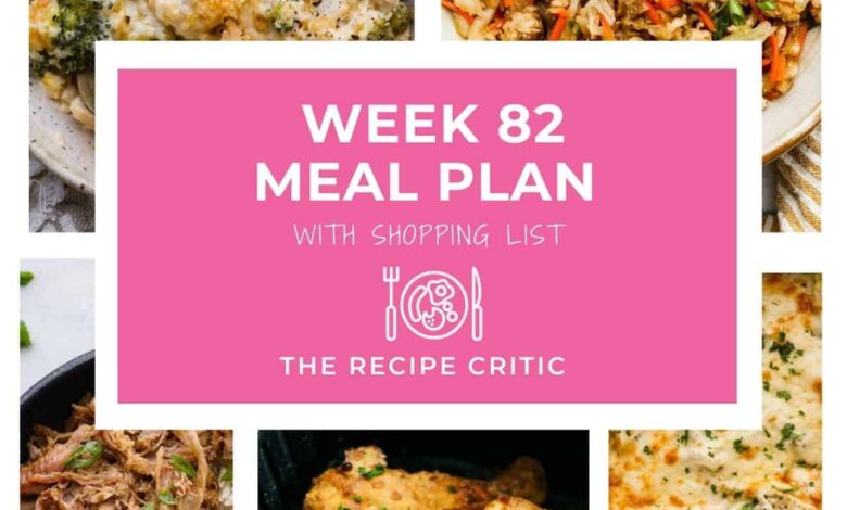 Collage of hero images from the different recipes used in this weekly menu plan.Collage of hero images from the different recipes used in this weekly menu plan.