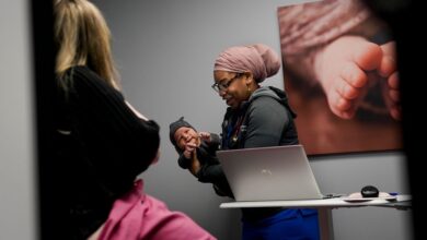 Dr. Constance Williams Chapman, OB/GYN, performs a postnatal checkup with Katie Pike, 27, and her son Kai, in Monticello, Arkansas.…
