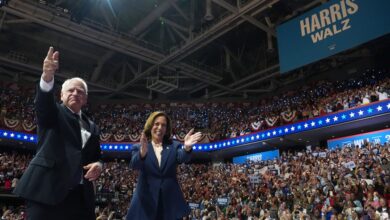 As Vice-President Kamala Harris and her newly announced running mate, Minnesota governor Tim Walz, set off on their first joint…