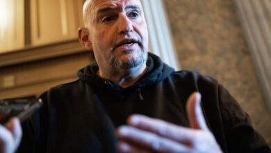 Sen. John Fetterman, D-Pa., is seen in the U.S. Capitol before the Senate passed procedural votes on the House-passed foreign-aid…