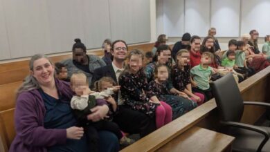 Christopher and Michelle Pence on the day of the adoption. The five new members of the family are smiling broadly…