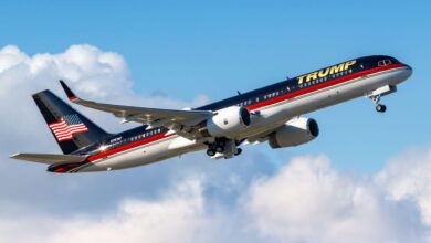 Trump’s plane got a slight makeover after he left office, with an American flag added to the tail. Photo: Alamy…